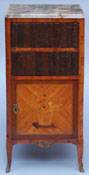 #371: LOUIS XV/XVI-STYLE SMALL SIDE CABINET The bookform door above a marquetry inlaid door