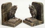 #147: PAIR OF SILVERED METAL OWL-FORM BOOKENDS ON MARBLE
