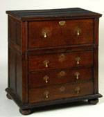 drawers, raised on block feet; the case in two parts; 36 3/4 in. x 36 1/4 in. x 22 1/4 in.
