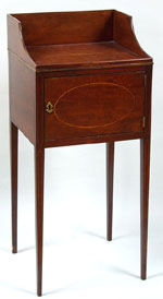 above a single door raised on four square inlaid tapering