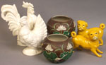 rooster and hen, height 8 inches; and a pair of Chinese matte
